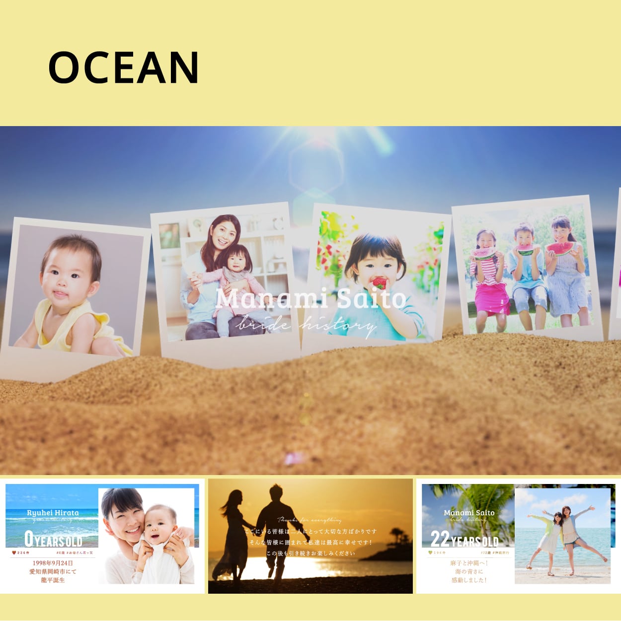 海を連想させるイメージ映像を挿入し、爽やかなリゾート感を演出。