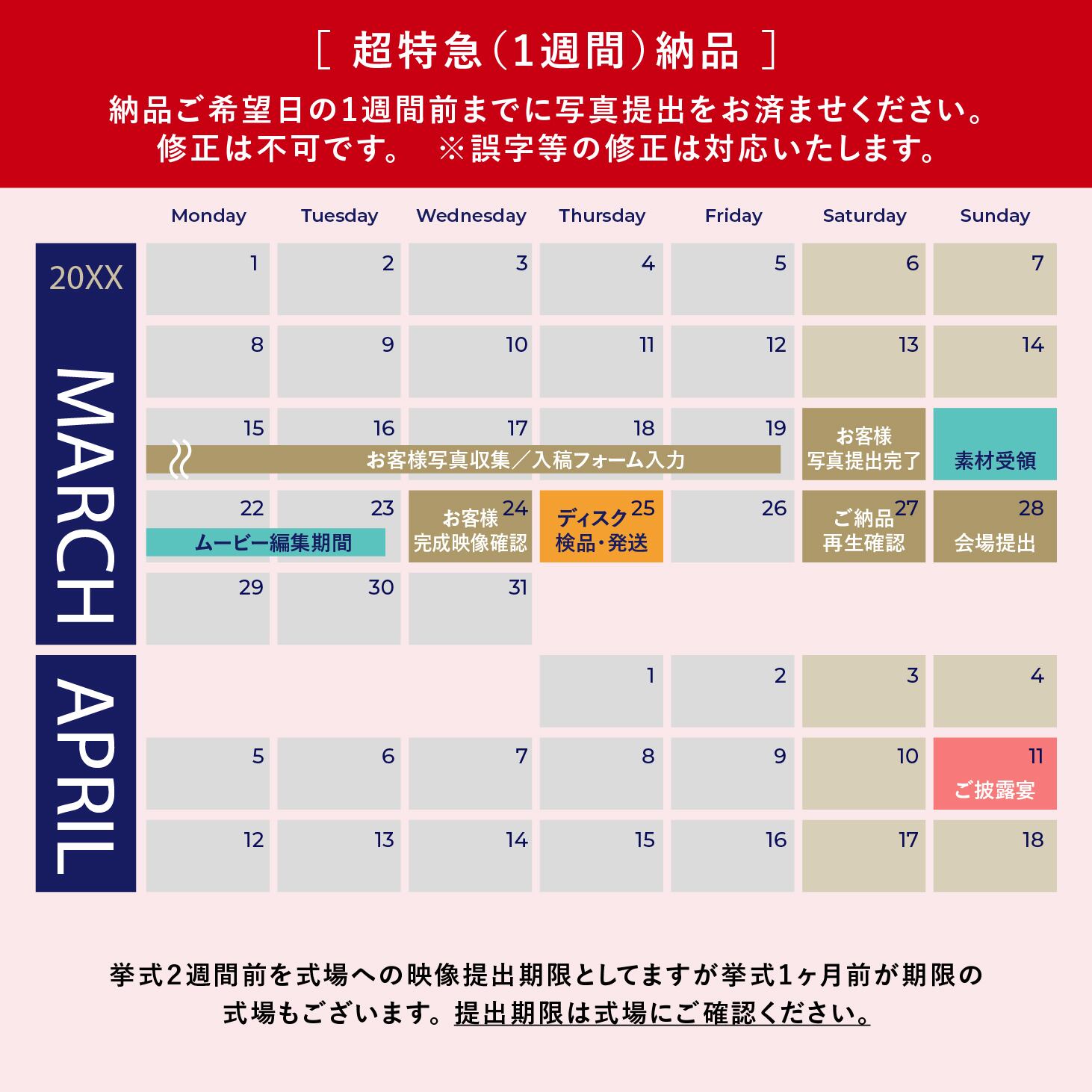 通常納期は写真入稿後、3週間(20日前後)が目安になります。